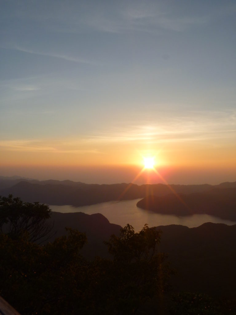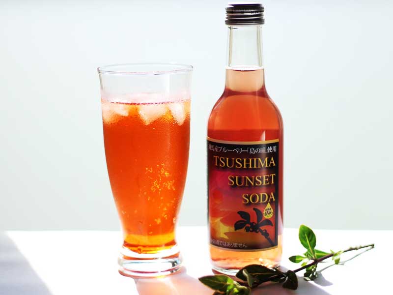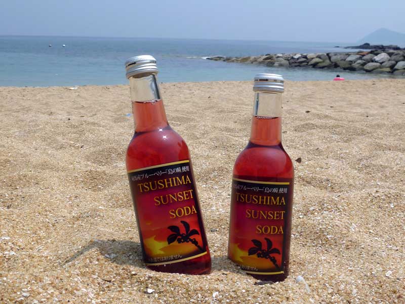 対馬の中央部の浅茅湾(あそうわん)に沈む【夕日の色を模したサイダー】です。